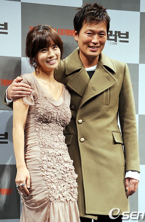 배우 정재영과 유선이 출연하는 영화 '글러브'(감독 강우석) 제작보고회가 16일 오전 서울 압구정 CGV에서 열렸다.