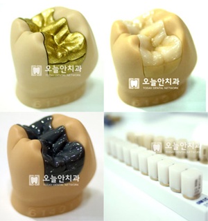 대중적으로 많이 알고있는 금은 치아와 가장 유사한 성질을 갖고 있는 재료로 내구성이 좋으며 인체 친화적이다. 하지만 열전도율이 치아보다 높아서 온도에 민감하고, 뜨겁거나 차가운 음식을 섭취했을 때는 이가 시릴 수 있다. 또 심미성도 떨어지고 충치를 제거한 후 본을 떠서 기공소에서 제작해야하기 때문에 다른 재료보다 더 많이 치과를 찾아야하는 단점도 있다.