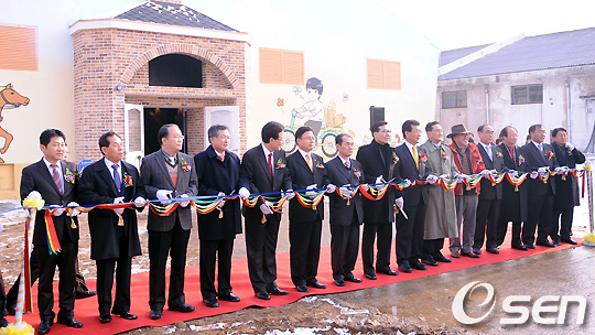 주원과 장항선이 참석한 가운데 체험전시관 개관 커팅식이 진행되고 있다.  /soul1014@osen.co.kr
