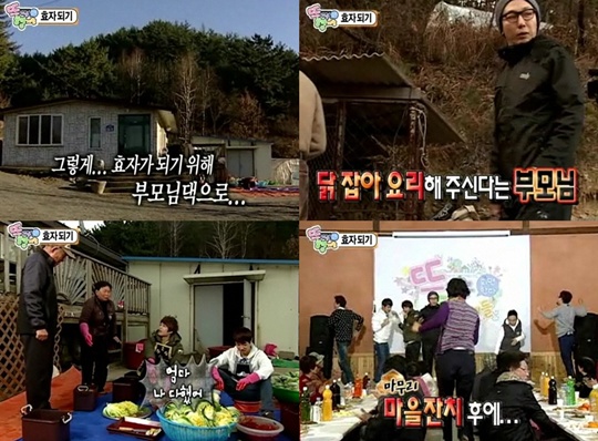 탁재훈과 토니안은 먼저 어머님 아버님과 함께 하모니카도 부르고 노래를 틀어넣고 댄스 타임을 갖는 등 즐거운 시간을 보냈다. 이후 키우는 닭을 직접 잡아서 요리를 해주시겠다는 부모님과 ‘살겠다’고 도망가는 닭을 잡겠다고 하는 멤버들이 고군분투해 폭소를 자아냈다.