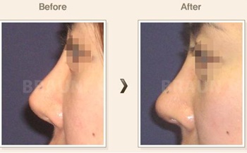 보형물을 코끝까지 사용한 경우 염증이나 피부가 붉어지는 등의 여러 가지 부작용들이 나타나게 된다. 이러한 경우 반드시 코끝을 본인의 연골로 대체하여야 하며 경우에 따라서 콧등만 다시 보형물로 높이거나 보형물 없이 비중격연골, 늑연골, 귀연골 및 진피지방 등의 자가 조직을 이용한 ‘無’-보형물 코성형을 시행하여야 한다.