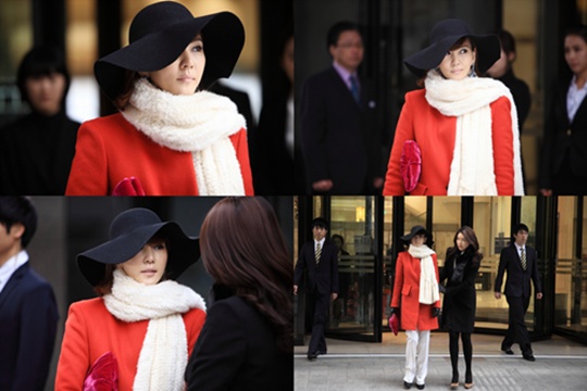 극중 황태희(김남주)가 화려한 레드컬러 코트에 하얀색 밍크 목도리와 우아한 라인의 카플린 모자를 쓰고 고고함을 드러내는 장면이다. 특히 럭셔리한 모습의 황태희 뒤로 여비서들이 줄줄이 백화점 쇼핑백을 들고 나오는 등 상위 1% 재벌가 부인으로서의 위용을 엿보게 했다. 이후 황태희는 리무진에서 자신을 기다리고 있는 구용식(박시후)과 함께 우아하게 포즈로 자신들을 기다리는 만찬 장소로 떠나게 된다.