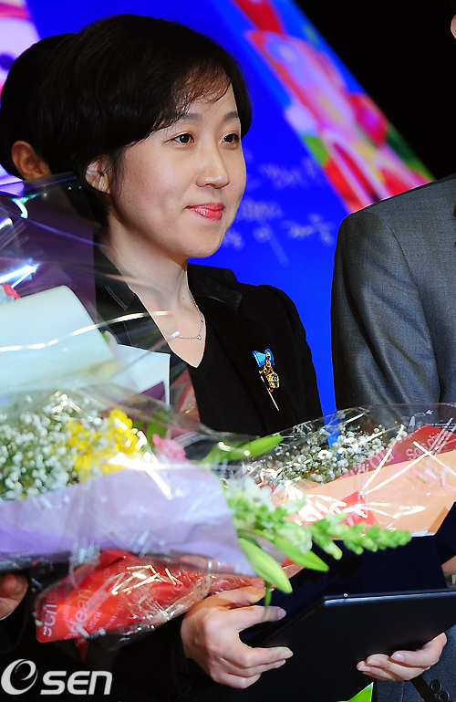 무대 위에서 제빵왕 김탁구의 강은경 작가가 국무총리상을 수상하고 있다./rumi@osen.co.kr