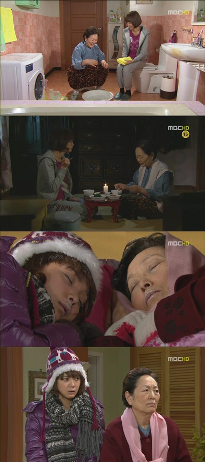 절약의 대미를 장식한 방법은 추운 한겨울에 난방비를 아낀다고 보일러를 끈 후 추위를 잊기 위해 서로를 부둥켜 안고 자는 할머니와 승아의 모습이었다. 하지만 온 몸이 꽁꽁 얼어 붙을 정도의 추위에 결국 보일러가 동파되면서 수리비만 곱절로 드는 상황이 발생돼 의도와는 달리 오히려 민폐만 끼치게 된 셈. 요즘 같아선 생각도 하기 힘든 절약법을 선보이며 상황에서 나오는 잔잔한 웃음과 함께 가슴 짠한 연민의 감동을 동시에 선사했다.