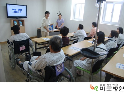 성공적인 인공관절 수술만으로 환자와의 인연이 끝나는 것이 아니다. 수술 중요도가 80%라면, 인공관절수술을 완성하는 나머지 20%는 재활치료에 달려있다고 해도 과언이 아니기 때문이다. 바로병원은 인공관절 수술 환자들을 위해 수술 전 후 전문 간호사에게 인공관절 수술에 대한 올바른 정보와 수술 후 겪게 생활의 변화나 회복 시기에 주의해야 될 점 등을 체계적인 프로그램을 통해 교육받도록 하고 있다.