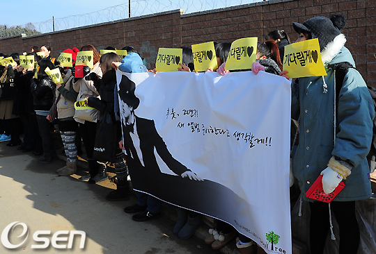 박효신 팬들이 부대 앞에서 박효신을 기다리고 있다./rumi@osen.co.kr