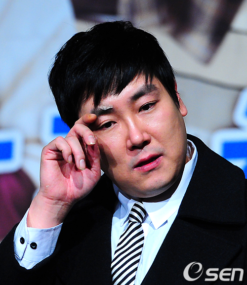 조진웅이 간담회 도중 땀을 닦고 있다. /jpnews@osen.co.kr