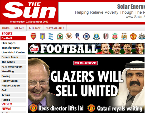22일(이하 한국시간) 영국의 언론 '더 선'은 맨유의 마이크 에델슨 전무이사의 말을 인용, '글레이저 가문이 맨유를 매각할 것이다'고 단독 보도했다. 에델슨 이사는 '더 선'과 인터뷰서 "이건 모두가 다 아는 사실이다. 언젠가는 글레이저 가문이 맨유를 팔 것이다"고 밝혔다.