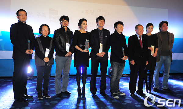 올해의 제작자상 이태헌, 독립영화감독상 홍형숙, 신인감독상 장철수, 신인연기자상 송새벽 이민정, 감독상 류승완, 공로상 김동호, 연기자상 최민식 서영희이 포토타임을 갖고 있다. /jpnews@osen.co.kr