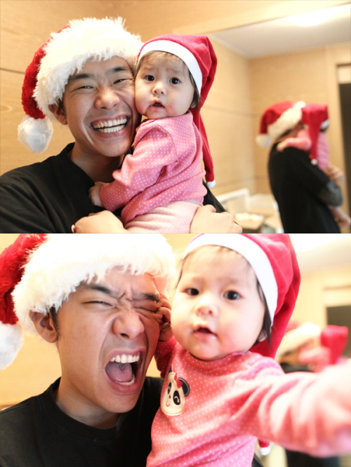 김진표는 사진과 함께 "딸이 7개월이 넘어가니 아들보다 살짝 눈에 더 들어옵니다. 역시 아빠한텐 딸인건가. 기집애라 그런지 자꾸 할켜요. ㅋㅋㅋ 메리 크리스마스!"라는 글도 덧붙여 진정한 '딸바보'임을 인증시켰다.