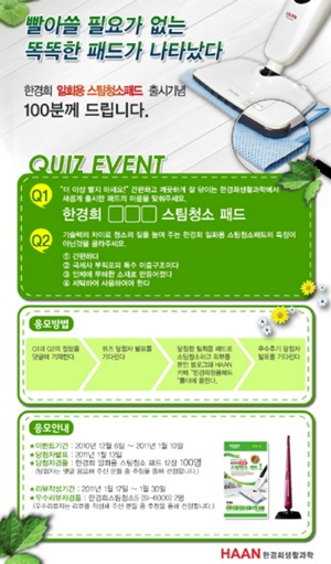한편 한경희생활과학에서는 일회용 패드 출시를 기념해 1월10일까지 ‘일회용 패드 퀴즈 이벤트’를 진행하며 100명을 선정해 일회용 패드를 증정한다.