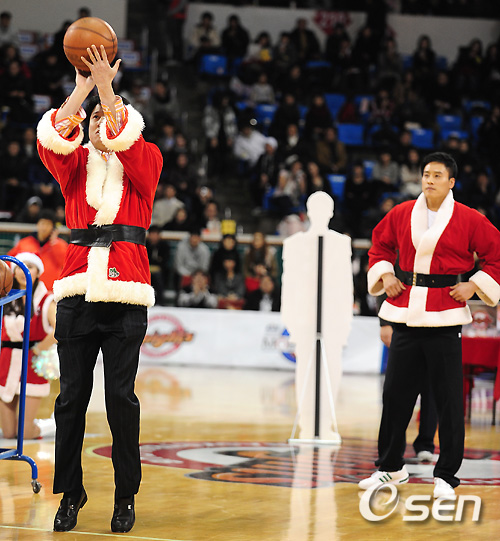 서울 SK는 24일 오후 잠실 학생체육관서 열린 안양 인삼공사와 2010-2011 현대 모비스 프로농구 3라운드 경기 하프타임 때 왕년의 스타 문경은과 우지원의 3점슛 이벤트 대결을 선보였다.
