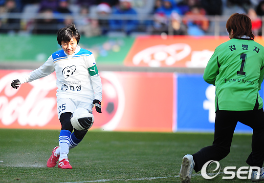 사랑팀 여민지가 슛을 넣고 있다. /rumi@osen.co.kr