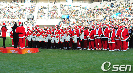 하프타임때 선수들이 기네스북 캐롤 부르기에 도전하고 있다./rumi@osen.co.kr