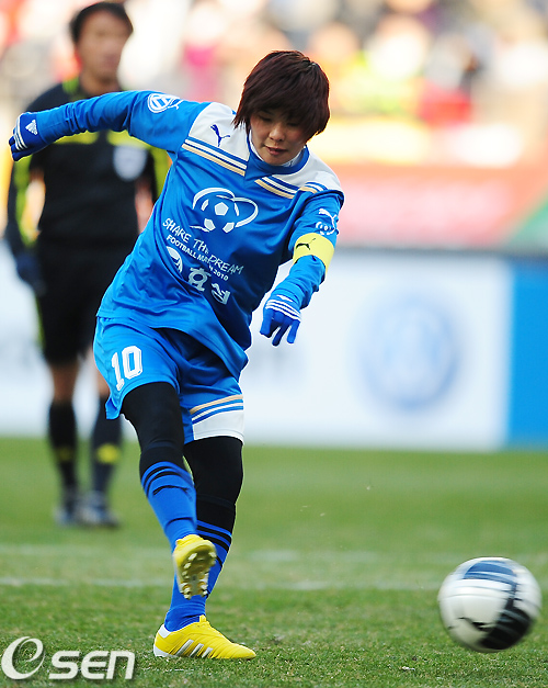 희망팀 지소연이 강슛을 날리고 있다./rumi@osen.co.kr