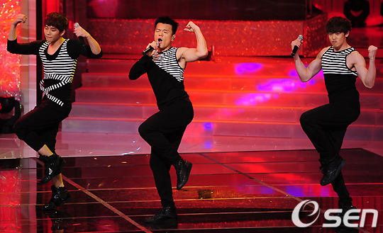 무대 위에서 준호, 박진영, 닉쿤이 미스에이의 '배드걸굿걸'에 맞춰 화려한 공연을 펼치고 있다./rumi@osen.co.kr