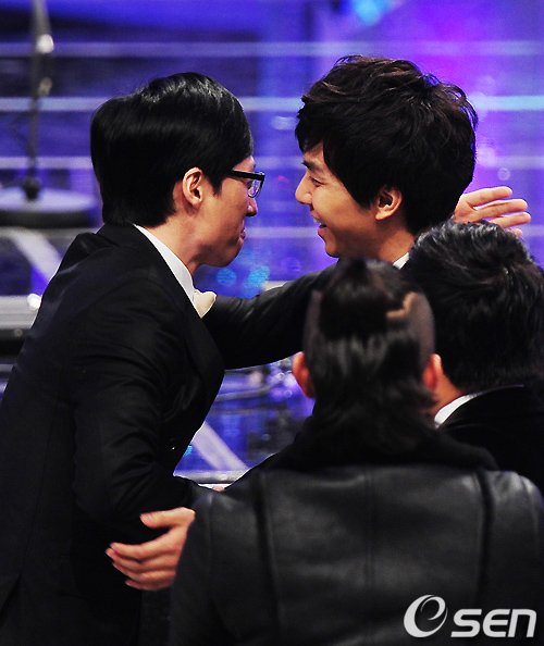 해피투게더3 팀이 베스트 팀워크상을 수상하자 유재석과 이승기와 포옹을 하고 있다./rumi@osen.co.kr