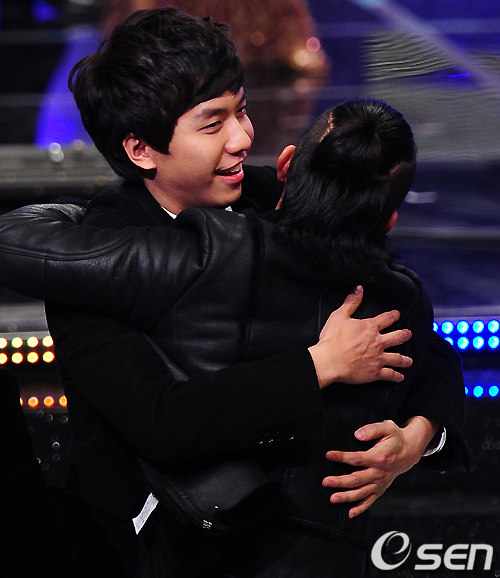 이승기가 쇼오락MC 남자부문 최우수상을 수상하게 되자 은지원과 포옹을 하고 있다. /rumi@osen.co.kr