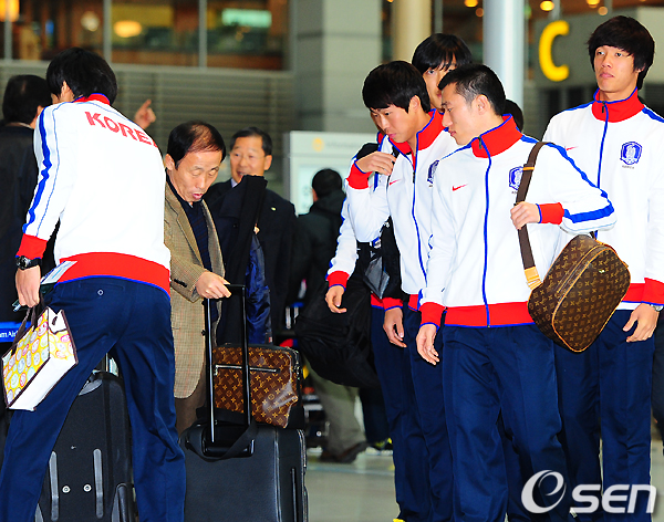 김진국 대한축구협회 전무 이사가 선수들과 출국 준비를 하고 있다. / jpnews@osen.co.kr