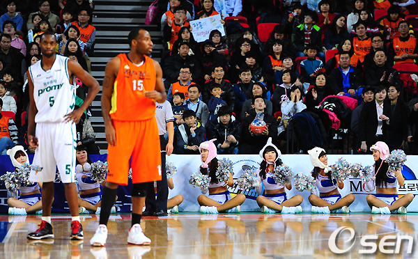 4쿼터 치어리더들이 열띤 응원을 하고 있다. / jpnews@osen.co.kr