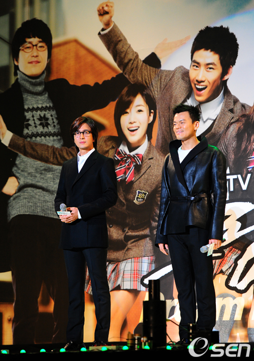 배용준과 박진영의 합작품, 드라마 '드림하이'로 드라마 제작에 참여하고 연기에 첫 도전한 박진영이 배용준이라는 동갑내기 친구를 얻게 됐다는 사실에 기쁨을 표했다.