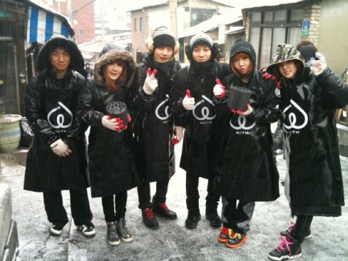 사진 속에는 세븐과 빅뱅 대성, 승리와 2NE1 박봄, 산다라박, 민지의 모습이 담겨 있다. 이들은 굳은 날씨에도 연탄을 들고 밝은 표정을 짓고 있다.
