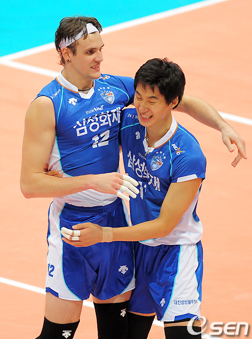 1세트 삼성화재 가빈이 득점에 성공하고 박철우와 기뻐하고 있다. / jpnews@osen.co.kr