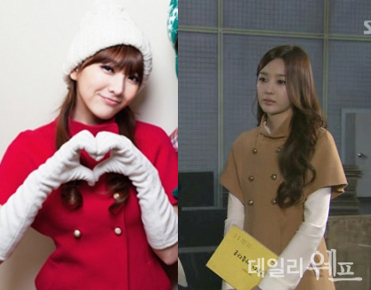 특히, 드림하이 '수지' vs 결혼식장 '아이유', 캐럴앨범재킷 '강지영' VS 웃어요 엄마 '강민경'이 같은 케이프 코트를 입어 네티즌들 사이에서 화제가 되고 있다.