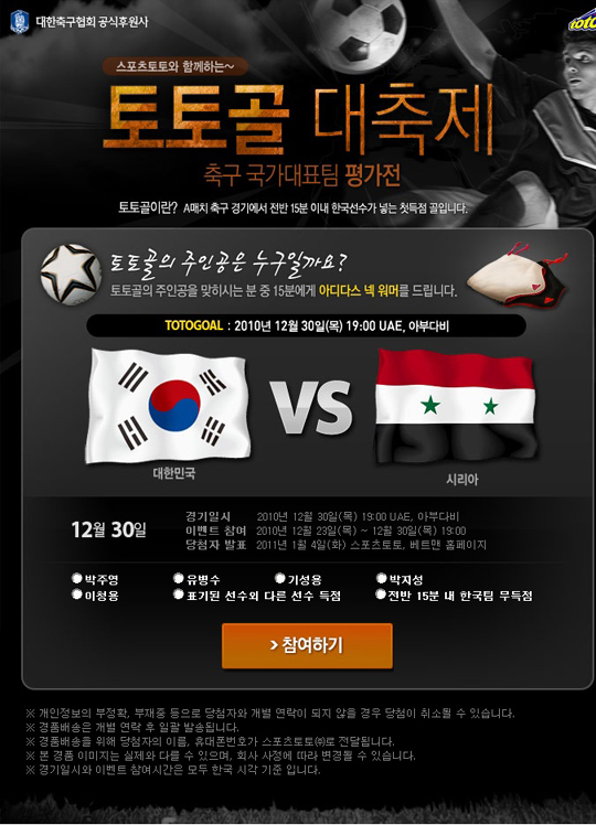2011 AFC 아시안컵 대비한 한국-시리아 평가전 대상 토토골 이벤트