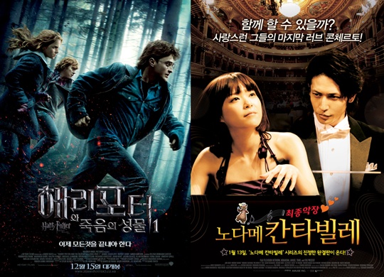 다양한 장르와 내용의 영화들이 선보이는 올 겨울 극장가에 오랜 시간 동안 사랑을 받아온 시리즈의 완결판 영화들이 등장해 관심을 모으고 있다. ‘노다메 칸타빌레’ 시리즈의 피날레를 화려하게 장식할 ‘노다메 칸타빌레 최종악장’과 ‘해리포터와 죽음의 성물1’이 그 주인공이다.