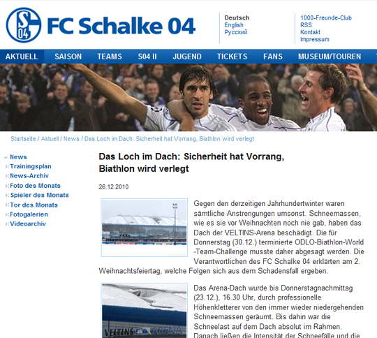 독일 분데스리가의 강호 샬케04가 폭설에 큰 피해를 입었다.
