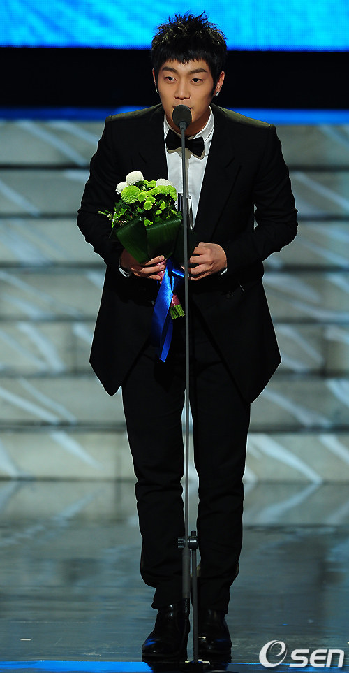 비스트의 윤두준이 코미디 부문 신인상을 수상한 후 소감을 말하고 있다./rumi@osen.co.kr