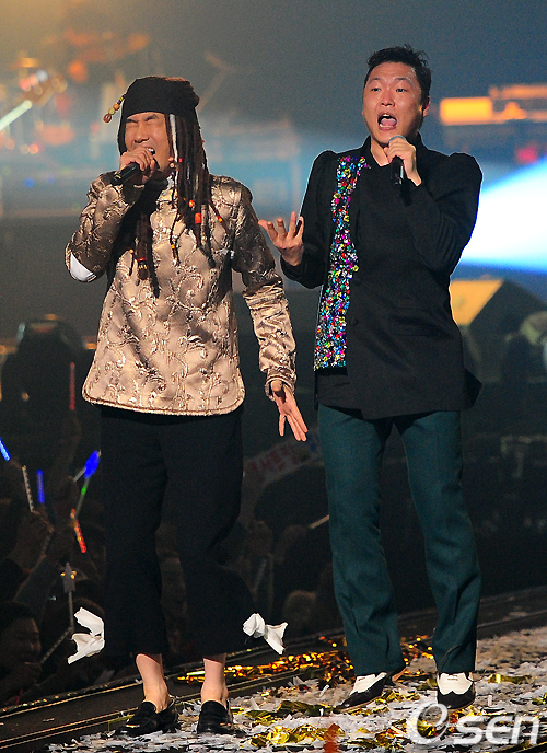 ‘완타치’ 합동공연으로 연말 공연 1위를 휩쓸고 있는 김장훈과 싸이가 주사 투혼을 불태우고 있다.