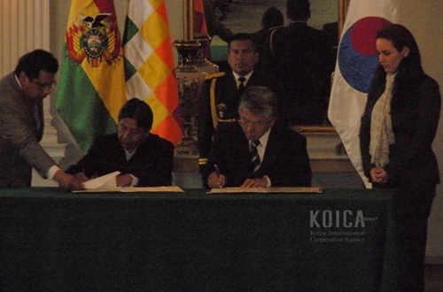 [이브닝신문/OSEN=이성원 기자] 대외무상원조 전담기관인 한국국제협력단(KOICA)은 지난 27일 볼리비아 외교부 청사에서 한국과 볼리비아 정부 간 볼리비아 과라요스 지역 상수도시설 구축사업에 대한 합의문에 서명했다고 밝혔다.