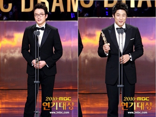 정준호, 지진희, 공효진, 신은경이 2010 MBC 연기대상 남녀 최우수상을 수상했다.