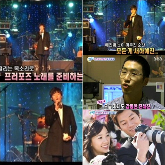 30일 방송된 SBS '한밤의 TV연예'에서는 이천희가 전혜진에게 달콤한 프러포즈를 하는 영상을 입수해 선보였다.