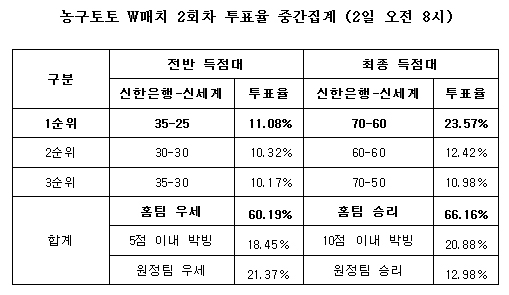 2010-2011 시즌 농구토토 W매치 2회차 투표율 중간집계 결과
