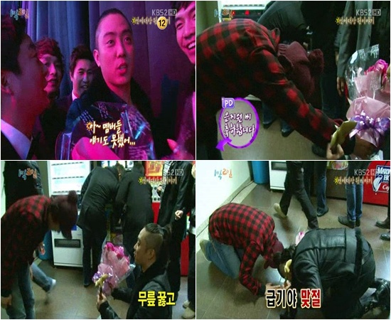 다른 멤버들의 축하 속에 기뻐하던 은지원은 나영석 PD로부터 축하의 꽃다발을 받고 감격했다. 나 PD는 "은지원 씨 수고하셨다"고 90도 인사를 했고 이에 은지원은 무릎을 꿇으며 감사의 뜻을 전했다. 그렇게 서로의 공으로 돌리던 두 사람은 급기야 맞절까지 하며 훈훈한 광경을 연출했다.