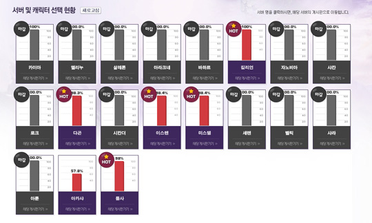 사전선택 서비스가 지난 30일 오후 3시 시작되자마자 1시간여 만에 서버 한 대가 마감된 것을 비롯해 준비한 서버 7대가 모두 마감되면서, 당일 3대의 신규 서버를 추가 오픈했다. 1월 3일 현재 총 19개의 서버가 오픈되어 있으며, 추가된 신규 서버 또한 마감이 임박해 있는 상황이다.