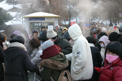 이날 행사에는 다문화가정과 소외이웃들도 많이 참가해 2011년에는 함께 사는 사회를 이뤘으면 하는 소망을 나타내기도 했다. 풍납동에 사는 장지호(43‧자영업) 씨는 아내와 아들 둘과 함께 해맞이에 나섰다가 떡국 나누기 행사에 참여했다. 떡국이 너무 맛있다고 말한 장씨 가족은 서로의 건강을 새해 첫 번째 소망으로 꼽았다. 동갑내기 친구들의 모습도 눈에 띄었다. 올해 27살이 된 한동네 친구라고 자신들을 소개한 김지현, 이상혁, 이재형 씨는 대학졸업을 앞두고 해돋이를 보며 마음을 다잡기로 했다. 떡국 한 그릇을 뚝딱 해치운 이들이 꼽은 1순위 소망은 취업이었다.