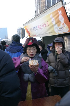 아침 8시도 안돼서부터 떡국 인파가 몰렸지만 자원봉사자들의 빠른 손놀림으로 금세 2011그릇의 떡국이 동나 버렸다. 이날 떡국을 먹지 못한 시민들에게는 비타민하우스에서 마련한 1700포의 비타민 캔디가 제공돼 아쉬움을 달랬다.