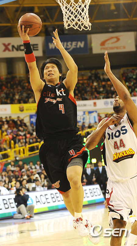 프로 데뷔 169경기 만에 터진 첫 덩크슛은 누구도 예상치 못한 시점에서 터졌다. 부산 KT 박상오(30·196cm). 그의 기백을 확인할 수 있는 장면이었다. 공동 2위를 달리고 있는 KT. 그 중심에 바로 박상오가 있다.