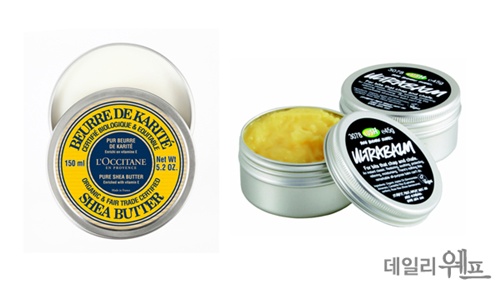 록시땅의 ‘퓨어 시어 버터 ESR'은 기존 시어버터 제품에 0.2% 비타민 E를 첨가해 향이 변질되는 것을 막았다. 또 다른 제품인 LUSH의 울트라밤은 인공적으로 석유에서 추출된 유화제 없이 자연에서 얻은 식물성분으로만 만들어졌다.