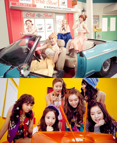1월 활동하는 걸그룹 대표주자 시크릿과 달샤벳은 농염한 섹시함으로 큰 인기를 모은 지난해 걸그룹 전략을 과감히 배제하고, 귀엽고 앙증맞은 콘셉트를 꺼내들었다.