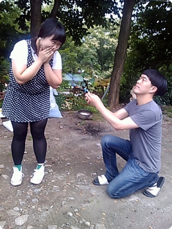 두 사람의 열애 소식이 알려지자 김민기는 자신의 미니홈피에 "이왕 이렇게 된거 잼있게 공개"라면서 자신이 프러포즈를 하는 듯 무릎을 꿇고 있고 홍윤화는 행복한 듯 미소를 짓고 있는 모습의 사진을 대문에 걸어놨다.