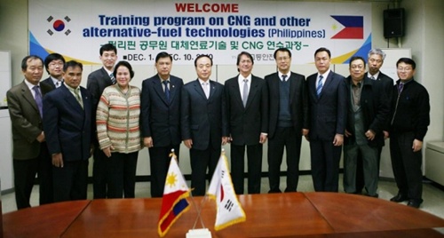 [이브닝신문/OSEN=이성원 기자] 한국국제협력단(KOICA)이 지난해 12월1일부터 10일까지 필리핀 공무원 6명을 대상으로 저공해 대체연료차량(CNG) 및 배출가스 저감장치에 관한 연수를 실시했다. 사진은 필리핀 연수생들과 정상호 교통안전공단 이사장(가운데)이 기념촬영하는 모습. 사진제공=한국국제협력단