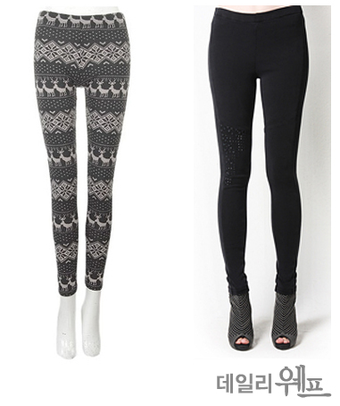 겨울 패션의 일등 공신 레깅스가 올해는 다양한 눈꽃 무늬 등의 패턴과 장식으로 더욱 화려해져서 돌아왔다.