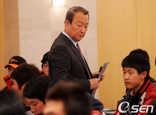 KBO 유영구 총재가 신인선수들의 교육을 지켜보고 있다. /soul1014@osen.co.kr