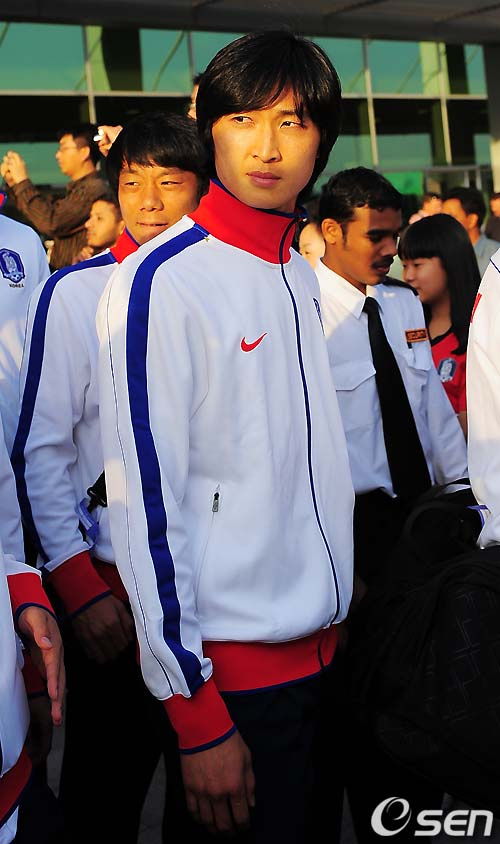 곽태휘가 담담한 표정으로 공항을 빠져나가고 있다. /rumi@osen.co.kr