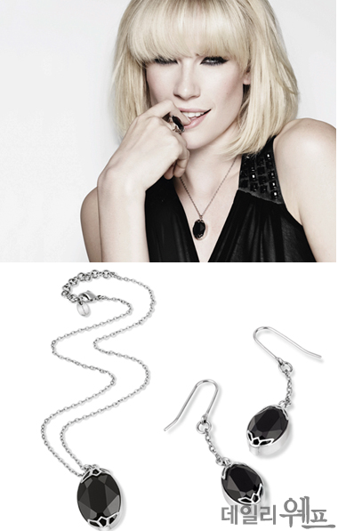 최근 광고 비주얼에서 볼드하고, 글래머러스한 디자인의 이어링과 반지를 선보여 여성들의 마음을 흔들며, 이목을 집중시켰다. 메탈을 베이스로 블랙 다이아몬드 컬러 큐빅이 세팅되어, 귀걸이 하나만으로도 돋보이는 큼직한 사이즈다.